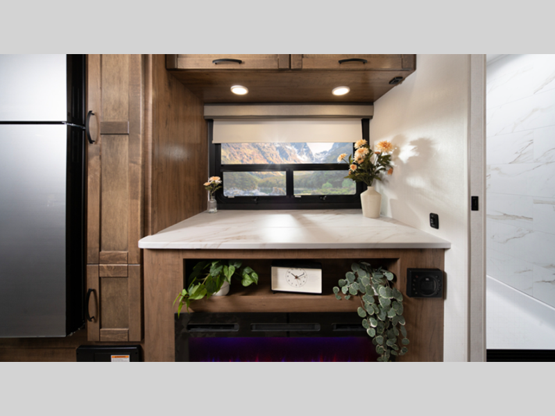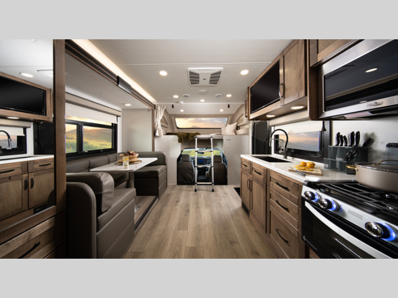 Sleeps 4 Slides 1 Length 31 ft 4 in Ext Width 8 ft 4 in Ext Height 12 ft 6 in Int Height 7 ft Interior Color Stillwater Exterior Color Partial Paint, Harvest Night, Night Shade, Summer Equinox, Winter Sky. Hitch Weight 12000 lbs GVWR 19500 lbs Fresh Water Capacity 53 gals Grey Water Capacity 31 gals Black Water Capacity 31 gals Tire Size 225/70R19.5 Furnace BTU 30000 btu Generator 6,000W generator with auto-gen start Fuel Type Diesel Engine 6.7L Power Stoke V8 Turbo Diesel Chassis Ford F550 4x4 Horsepower 330 hp Fuel Capacity 67 gals Wheelbase 212 in Number Of Bunks 1 Available Beds Queen Torque 950 ft-lb Refrigerator Type 12V Refrigerator Size 10 cu ft Shower Size 30" x 36" Number of Awnings 1 Axle Weight Front 7000 lbs Axle Weight Rear 14706 lbs LP Tank Capacity 56 lbs. Water Heater Capacity 10 gal Water Heater Type Gas/Electric AC BTU 15000 btu TV Info LR 50" LED HD Smart TV Awning Info 19' Electric with LED Lights Gross Combined Weight 31500 lbs Shower Type Standard Similar Floorplans