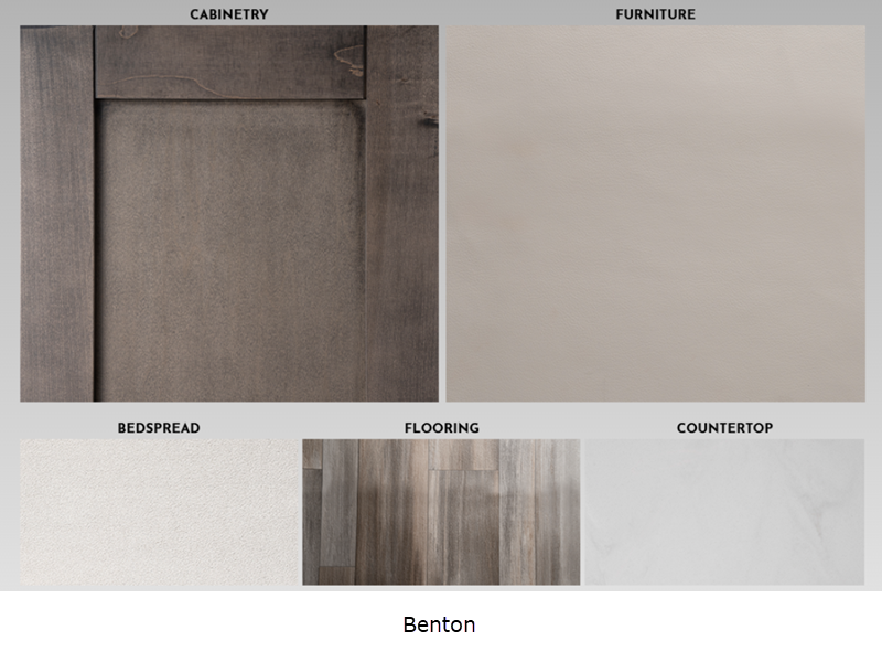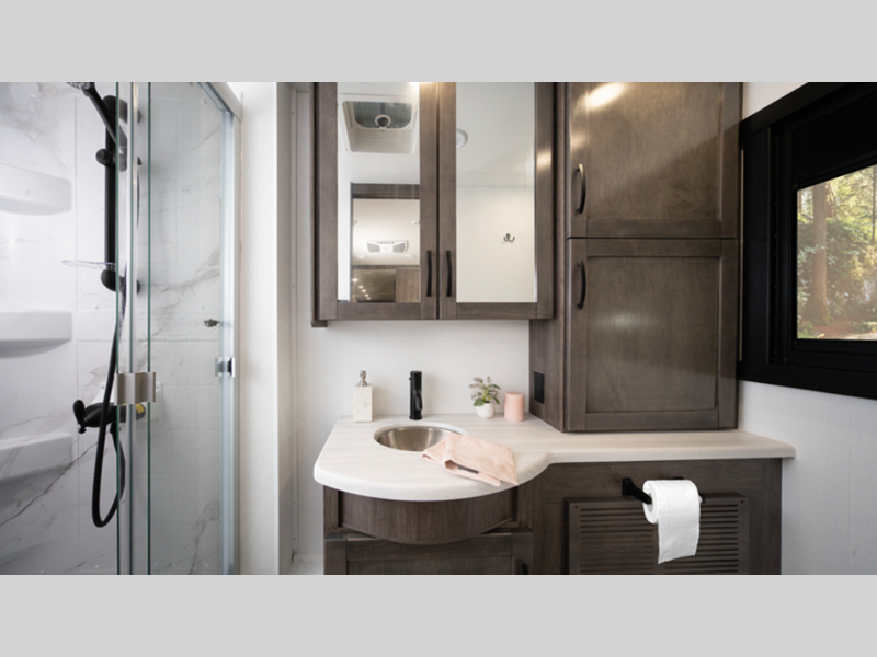 Sleeps 5 Slides 2 Length 33 ft Ext Width 8 ft 5 in Ext Height 12 ft 10 in Int Height 7 ft Interior Color Benton, Farmhouse Exterior Color Standard Graphics. Full-Body Paint; Glacier Blue, Harbor Grey, Lava Rock, Thunder Hitch Weight 5000 lbs GVWR 22000 lbs Fresh Water Capacity 72 gals Grey Water Capacity 40 gals Black Water Capacity 50 gals Tire Size 22.5" Furnace BTU 30000 btu Generator 5,500-watt with Auto-Gen Start Fuel Type Gas Engine 7.3L V8 Chassis Ford F53 Horsepower 335 hp Fuel Capacity 80 gals Wheelbase 228 in Available Beds King Torque 468 ft-lb Refrigerator Type Residential Cooktop Burners 3 Shower Size 30" x 36" Number of Awnings 1 Axle Weight Front 8000 lbs Axle Weight Rear 15000 lbs LP Tank Capacity 16.5 gals Water Heater Type Tankless AC BTU 28500 btu TV Info LR 50" LED HD Smart TV, BR LED HD Smart TV, Ext. LED HD Smart TV Awning Info 16' Electric with LED Lights Gross Combined Weight 26000 lbs Shower Type Standard Electrical Service 50 amp Similar Floorplans