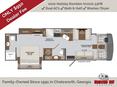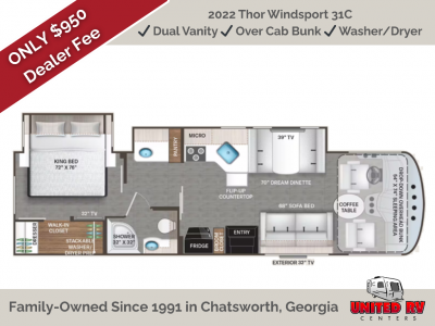 United RV Centers Inc works hard to ensure the accuracy of all its listings however we are not responsible for any misprints, typos, or errors found in our website pages. Manufacturer-provided pictures, specifications and features will be used as needed. Inventory shown may be only a partial listing of the entire inventory. Please contact us at 706.695.7000 for availability as our inventory changes rapidly.